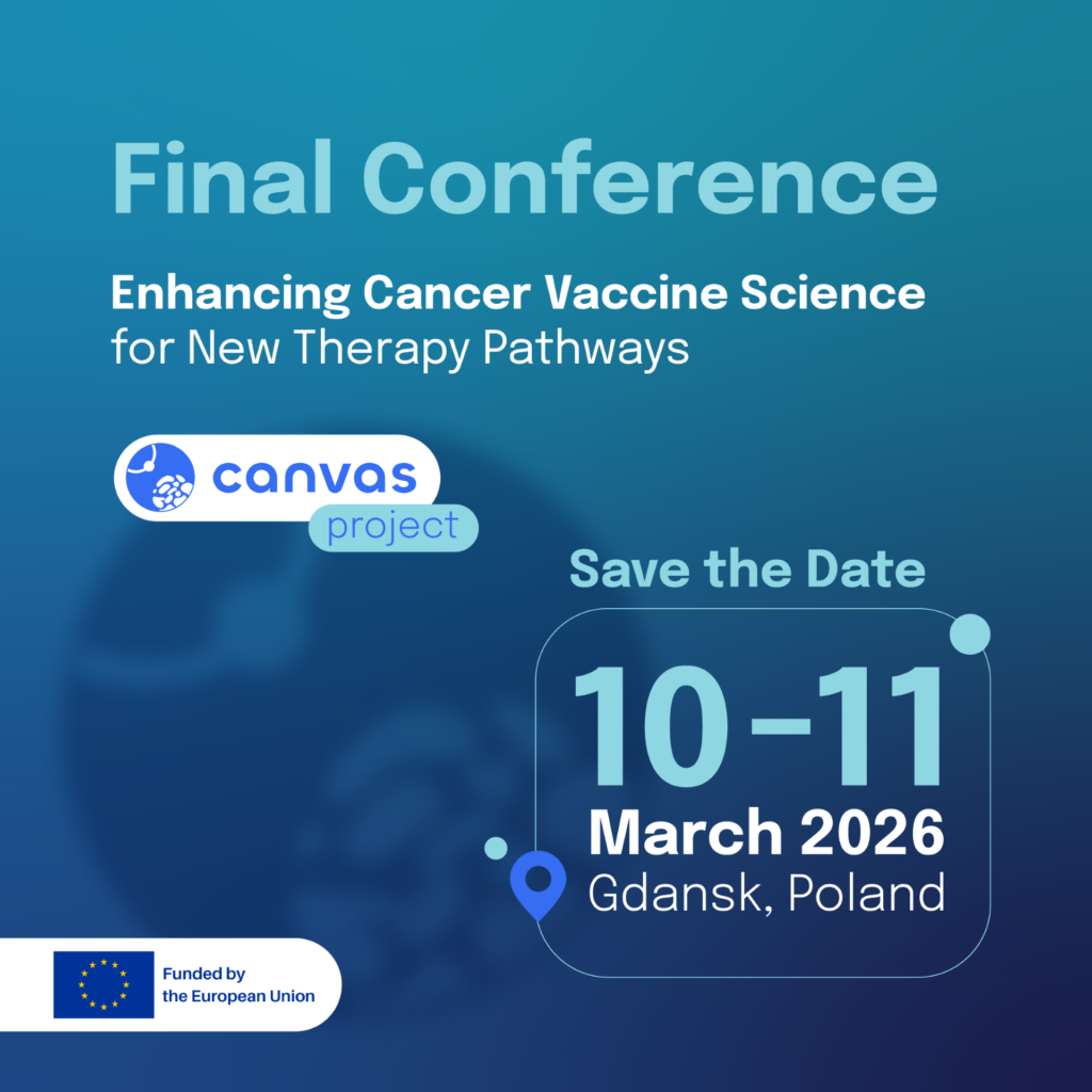 The CANVAS project consortium is pleased to invite you to the Final Conference of the project. The event will showcase key outcomes of the project and feature keynote lectures, thematic sessions, and a poster session. The conference will bring together researchers, clinicians, and stakeholders involved in advancing innovative cancer therapies. Join us in Gdańsk, Poland, […]